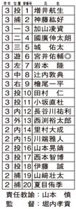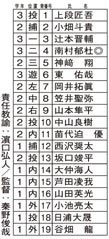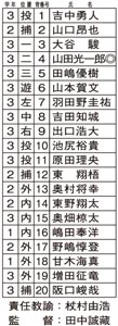 大会出場(予定)選手は、左から学年・守備位置・背番号・氏名 ◎印は主将 [本紙配布地域内、敬称略]