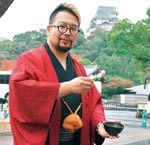 お城見ながら抹茶体験 茶人の梅原宗直さんが週3回実施