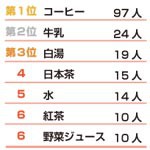 リサーチ 〜 朝に飲む最初の1杯は? 半数近く コーヒーで眠気ざまし