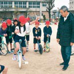 和歌山市中之島の中之島小学校で2月22日、一輪車の正し… -
