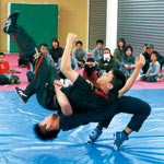 レスリングの魅力知って 国体で活躍 4高校生が技披露