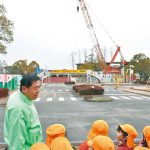 工事逆手に巨大クレーン解説 春は交通公園へ遊びに来て… -