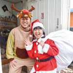 クリスマスイブ、サンタクロースとトナカイにふんして近所の小… -