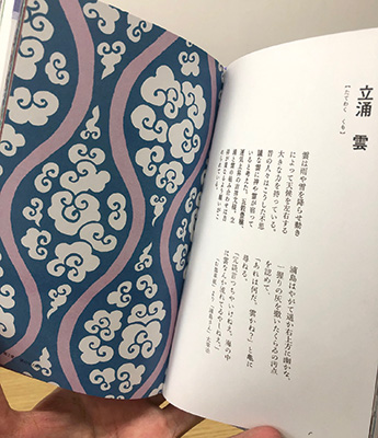 私が一際興味をひかれたのは2章の「波のかたち」。着物や陶器、工芸品に使われてきた波文様の型を教えてくれます。例えば渦巻く流水を描く「観世水」は淀まぬ水のことで清廉、正義を。「波千鳥」は大波も小波も一緒に超える鳥を通じ、夫婦円満や和を、といった風に人間の願いや祈りを波に込めた文様を、なかひらさんが親しみやすいタッチで描いています。なかひらさんは「形のない波を人間は様々に解釈し、形にし、着物など暮らしにそえてきました。改めて日本人は海の民だなと思いました」と話します。
