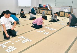 競技かるたは、和歌を百首集めた「小倉百人一首」を使います。上の句が読まれるのを聞き、対戦相手より早く下の句が書かれた札を取る競技です。同協会で指導する室川公宏さんは「ここ5年で高校生以下が増えており、今は会員40人中、高校生以下が30人。兄弟や親子で来てくれる人も多い。集中力や暗記力がつき、必ず勉強にも役立ちます」と語ります。