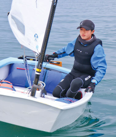 B&G和歌浦海洋クラブは月3回、日曜日に練習しています。使うのはOP級という小型のヨット。子どもたちは風の向きや強さに注意しながら、ヨットを操ります。