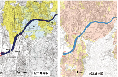 お父さん 今までは30年や100年に一度の大雨が降った時、どの場所が危なくなるのかを地図にまとめていたんだけど、新しい図は1000年に一度の大雨で考えているんだ。和歌山市の和田川周辺では水に浸かる場所が6割増え、紀三井寺駅周辺が含まれたよ。亀の川は黒江駅周辺が深く浸かり、水が引くまで最大3日かかるらしい。