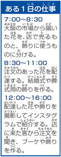 「好みに合わせて飾りやブーケを作るため、生活に身近な仕事の中で、センスが必要なところです」