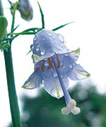【問題3】③ツリガネニンジン(釣り鐘型の紫の花が特徴。なお、野菜のニンジンとは関係なく、根がニンジンのように見えるため、この名が付いたと思われる)