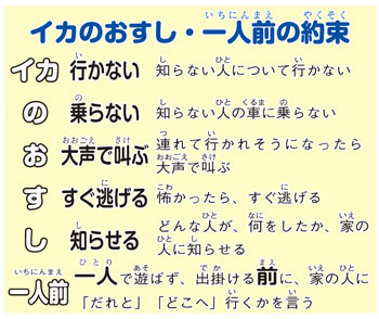 新学期が始まり、新しくできた友だちと遊びに行くことがあるかもしれません。和歌山県警察本部生活安全企画課の黒井孝行さんは「知っている子も多いと思いますが、〝イカのお寿司・一人前〟の約束を忘れず、守ってください」と呼びかけています。