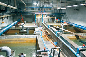 次は、魚にとって大事な水。大水槽の水は25㍍プール2杯分の450㌧もあります。海から水をくみ、水をきれいにするろ過装置を通してから、水槽に入れます。