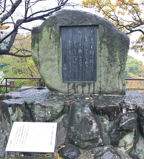 【問3】『鞠と殿様』の歌詞は、和歌山城の天守閣前に立つ石(写真)に書かれている。文字を書いたのは、歌詞を作った人。だれか?