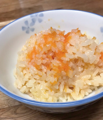②皮ごとすりおろしたにんじんと、コンソメを入れて、ひと混ぜする。