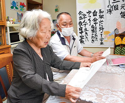 20年前に故郷へ戻り、岩橋夜間学校と、読み書きを身に付ける岩橋識字学級の存在を知った。以来、もう一度学び直したいと月2回通う。「勉強している時が一番楽しい。先生に巡り会えて人生が変わった。もう少し生きて、できる限り続けたい」と声を弾ませる。