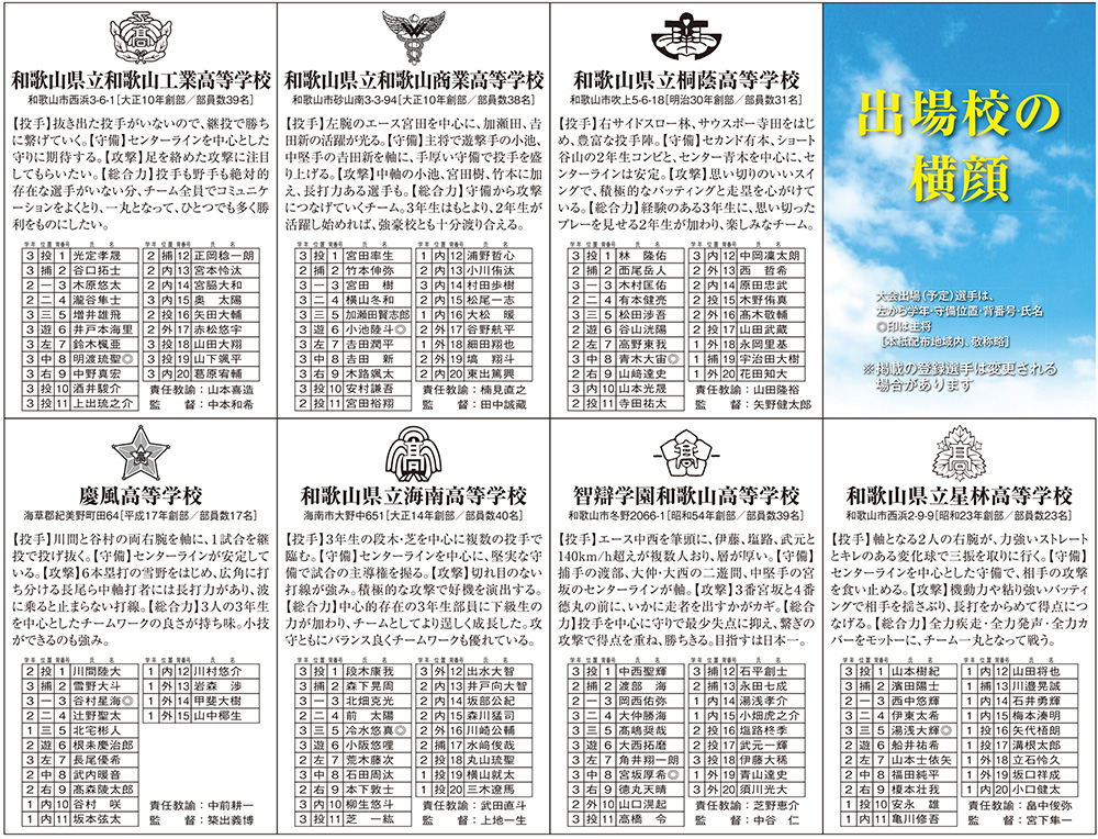 第103回全国高等学校野球選手権 和歌山大会特集〜出場校の横顔