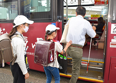 乗降時に苦労し、迷惑をかけているのではと不安を覚えていたある時、「階段はここだよ」と女の子の声がし、小さな手がそっと背中に触れた。同じ停留所から乗る和歌山大学附属小学校の児童だ。以来、この児童が卒業した後は、別の児童がサポートをしてきた。乗降を手伝う子とは別の児童が「ここの席が空いてるよ」と確保してくれることもあった。
