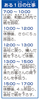 「使わなくなった紙を入れる『紙の杜リサイクルステーション』を和歌山や奈良に53ヵ所設けています。毎日回り、集めた紙を工場へ送ります」