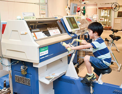 冬に向けて手袋やマフラーの準備はしていますか? 自転車をこいでオリジナルのニット製品を作れる編み機がある、フォルテワジマ(和歌山市本町)3階のフュージョンミュージアムを訪れました。