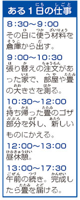 「新しい畳を作ったり、古くなった畳の表になるゴザを張り替えたりします。お寺から依頼されることもあります」