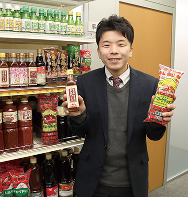 完全に熟したトマトの風味を生かし、すっぱさを抑えて、甘みのある味に仕上げており、オムライスやスパゲッティに使うとおいしいと人気です。ウスターソースや焼肉のたれ、ゆずぽん酢なども作っていますので、ぜひ味わってくださいね。