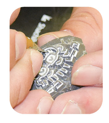 彫り終えたらインクをつけて試しに押しましょう。気になる所を整えれば完成です。