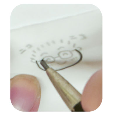 トレーシングペーパーを裏返し、消しゴムの上に置きます。爪でしっかりこすると、絵や文字が反転して写ります。