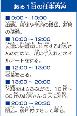 指の爪をジェルやラメ、ストーンというネイル用のパーツなどできれいに飾り付ける、ネイリストの小原牧子さん(50)に聞きました。
