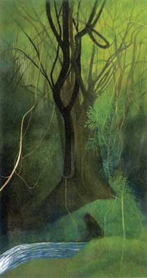 和歌山からは同人の清水達三さんが南紀の秘境と呼ばれる田辺市の森と谷を描いた「百間山渓谷」(写真)、同じく同人の清水由朗さんはバラをモチーフにした「冬の花」を出品する。