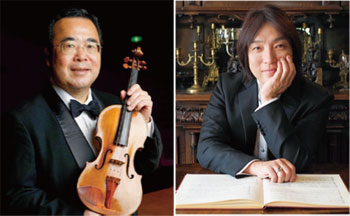 ヴァイオリニストの澤和樹さん(写真左)、ピアニストの宮下直子さんといった和歌山県を代表するアーティストと、指揮者の飯森範親さん(同右)率いる日本センチュリー交響楽団、若手チェリストの山澤慧さんが出演。ベートーヴェン『三重協奏曲ハ長調作品56』、ドヴォルザーク『交響曲第9番「新世界より」』を演奏する。澤さんと宮下さんによる県文の思い出話も。