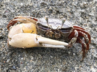 観海閣周辺の干潟で、求愛ダンスを踊るハクセンシオマネキやチゴガニ、砂団子を作るコメツキガニ、近畿地方ではほとんど見ることができない絶滅危惧Ⅱ類のイボウミニナなどを観察する。