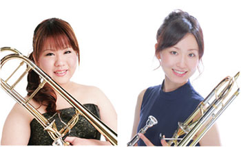 同市出身の東谷咲子さん(写真左)、鳥取市出身の田中洋実さん(同右)によるデュオで、2019年の名古屋トロンボーンコンペティションアンサンブル部門で第1位を獲得した。メンデルスゾーン『ピアノ3重奏曲第1番作品49より第1楽章』、アルブレヒツベルガー『アルトトロンボーン協奏曲』ほかを演奏。