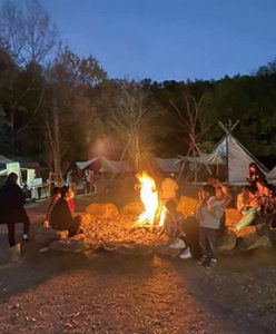 囲炉裏で火をたきながら、夜の公園を楽しむ。キッチンカー、メダカすくい、子ども縁日のほか、大道芸、よさこい演舞のステージ。7月18日午後5時から同市のサックス奏者、Nazukiさんのライブ。