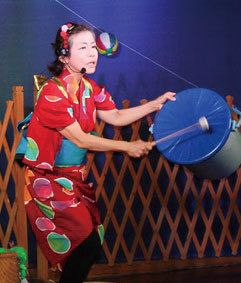 劇団ZEROのかわばたけいさん、松本紗和さん、キーボードの畑上智津子さんが、わらべうたや絵本の読み聞かせを披露。わらべうたを覚えるワークショップも。