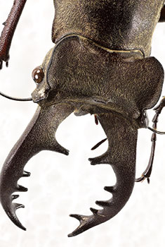 紀美野町のアンフィ合同会社が3Dプリンターを使って本物そっくりに作ったミヤマクワガタの巨大レプリカを展示。