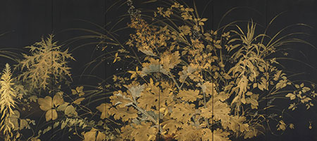 1階は、和歌山県ゆかりの作家による作品や資料213点で、川端龍子の「草炎」(写真)や下村観山の「唐茄子畑」、黒川紀章の近代美術館設計図など。2階は写真草創期に活躍した県出身の写真家、島村逢紅の作品200点以上を展示する。
