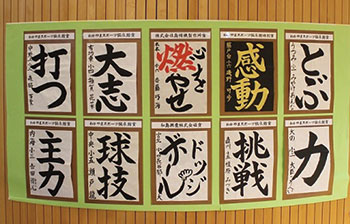 「文字でスポーツの感動を伝える」をテーマに募集した小学生の書道作品を展示。「二刀流」「感動」「力」など717点。午前10時~午後7時。