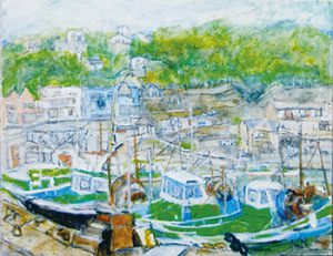 30年近く続く会が開く最後の展示会。70、80代の6人が油絵を中心に、スケッチに行った先の風景や静物など30点を展示。午前10時〜午後5時(最終日4時)。