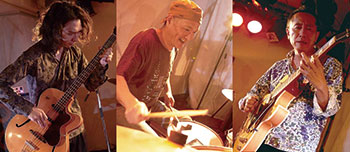 3月7日㊊午後7時半、ぶらくり丁のモーメンツ。少年時代をカナリア諸島で過ごした異色のパーカッション奏者、ヤヒロトモヒロ(写真中央)、進歩的、革新的な音楽を追求し続けるギターの鬼怒無月(同右)、漆・木工作家でもあるベーシストの宮田岳(同左)による3人組が来和する。3000円、当日3500円。音楽愛好会フォルテ(073・422・4225)