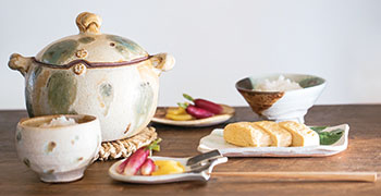 10月15日㊏~23日㊐、和歌山市東鍛冶屋町の鍛冶屋町ブルー。大阪で飲食店向けの食器を手掛けるクラフトアーツ天の火にかけられる器(写真)や、久留米絣のもんぺパンツ、ワンピース、スカートが並ぶ。カフェも。午前11時~午後5時。をぐらや(073・423・0393)。