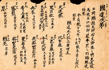 12月4日㊐まで、和歌山市岩橋の和歌山県立紀伊風土記の丘。岩橋千塚古墳群を築いたとされる古代豪族の紀氏は、長く地域の政治や祭祀の中心的存在で、現在も和歌山平野を潤す「宮井用水」の基礎を築いた。今展では紀氏の系譜図(写真)や宮井用水の資料、古墳の出土品などを展示。360円、大学生220円、高校生以下と65歳以上無料。11月6日、20日各日曜午後1時半、宮井用水と耕地開発について研究者が講演するシンポジウム。希望者は風土記の丘(073・471・6123)。