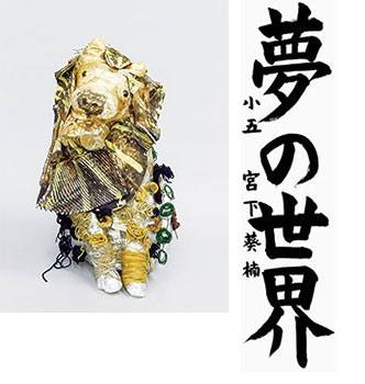 写真左=立体最優秀賞、瀬田英資さん(5年)の「世界に一匹だけのライオン」/右=書最優秀賞、宮下葵楠(あなん)さん(5年)の作品