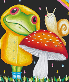 6月26日㊌~7月1日㊊、和歌山市築港の器とカフェと…扉。黒板にカラフルな絵を描くチョークアート。和歌山市の教室、マッシュアートの生徒10人が、動物などの絵を展示する。指導する林まきさんの作品(写真)も。午前11時~午後5時。林さん(090・6243・7757)。