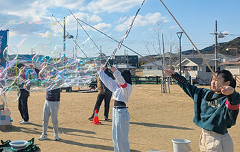 5月25日㊐、午後2時〜4時、和歌山市つつじが丘総合公園。大きくふくらんで伸びる巨大シャボン玉と一緒に遊ぶ。無数の中小シャボン玉のガーランドバブルなども。無料。雨天強風中止。冒険シャボン玉研究所(050・7116・0797)。
