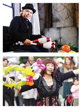 3月28日㊏と29日㊐各日午前11時と午後2時、和歌山城ホール玄関前広場。28日は大道芸人ひろと(写真左上)、29日はバルーンパフォーマーRey -麗-(同左下)が登場。圧巻の演技を披露し、会場を盛り上げる。無料。同ホール(073・432・1212)。