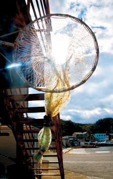風が吹き荒れる嵐の日、加太では漁師が港にとどまり、ロープは巻き上げられ、漁網は壁にかけられます。全ての物をくくりつけ、嵐が過ぎ去るのをじっと待ちます。せわしい時も静かな時も、加太には輝きを放つ個性があります。映画や写真撮影のセットのようにユニークで、あらゆる物にストーリーが宿っている町です。加太に住む人々は雨の日でも年中働き、休むことはないようです。