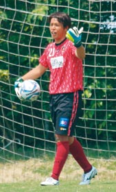 21日のアミティエ京都戦、1点リードの終盤にあわや失点という場面で足を伸ばし執念のクリアを見せたのがスナさんです。試合中は熱いですが、介護の仕事をされているせいか、普段はすごく優しい兄貴分。練習場に現れた時の「おはよう」の口調からとにかく優しい内面イケメンです(もちろん外見も!)。