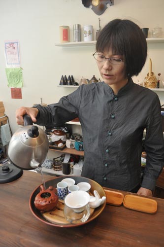 店名の「二十四節気」は季節の移り変わりに応じ、その時々においしく味わえるものを、との思いから名付けた。「お茶をお任せで」とのオーダーには、味や香りの好みを引き出し、時には「疲れ目」「体が冷える」と言った悩みにも耳を傾ける。今年1月から月2回、店内で教室も始めた。