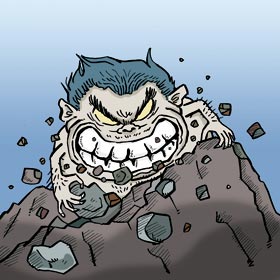 昔、太地の海から上陸してきた〝岩を食う魔物〟が、周辺の岩を次々に食いながら古座川までやってきた。やがて魔物は一枚岩にたどり着く。そして、大きくて美味しそうな一枚岩に食らいついた。