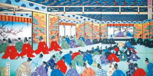 下の絵は、徳川吉宗が将軍宣下を受けた時の様子を描いた明治二十二年(一八八九)の浮世絵です。江戸時代の将軍は神聖な存在とされ、当時は描くことが許されませんでした。近代になってその制約がなくなると、こうした歴史的場面を描いた浮世絵が作成され始めました。