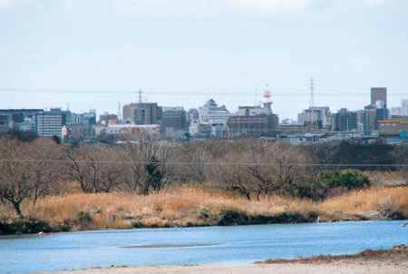江戸時代に書かれた『紀伊国名所図会』の「山口驛(えき)より遙に御城を望む図」に、遠くに見える天守閣が描かれています。城から北東へ約10㌔先です。最近は建物が増え、この付近から望める場所も限られてきましたが、その姿は、和歌山城の丘は見えず、天守閣だけが大きく見えるのです(写真)。江戸時代は、さらに遠くから望むことができたことでしょう。
